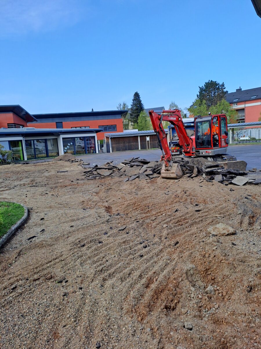 Les travaux de déminéralisation de la cour d’école Arc-en-ciel ont débuté.